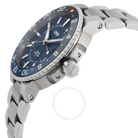 علبة وسوار من الفولاذ المقاوم للصدأ فضي اللون. إطار أسود دوار أحادي الاتجاه. ميناء أزرق مع عقارب وعلامات ساعات فضية اللون. علامات دقائق حول الحافة الخارجية. نوع الميناء: تناظري. عقارب وعلامات مضيئة. عرض التاريخ عند موضع الساعة 3. حركة أوريس كاليبر 798 أوتوماتيكية، مبنية على SW330-1، تحتوي على 25 جوهرة، تنبض بمعدل 28800 ذبذبة في الساعة، ولديها احتياطي طاقة لمدة 42 ساعة تقريبًا. زجاج ياقوت مقاوم للخدش ومضاد للانعكاس. تاج لولبي. غطاء خلفي شفاف. شكل العلبة دائري، مقاسها: 43.5 مم، سمكها: 12.60 مم. مشبك قابل للطي بزر ضغط. مقاومة للماء حتى عمق 300 متر / 1000 قدم. الوظائف: التاريخ، توقيت غرينتش، المنطقة الزمنية الثانية، الساعة، الدقيقة، الثانية. إصدار محدود. طراز ساعة الغوص. علامة الساعة: سويسرية الصنع. ساعة أوريس ذات الإصدار المحدود الأوتوماتيكية ذات الميناء الأزرق 01 798 7754 4175-Set.