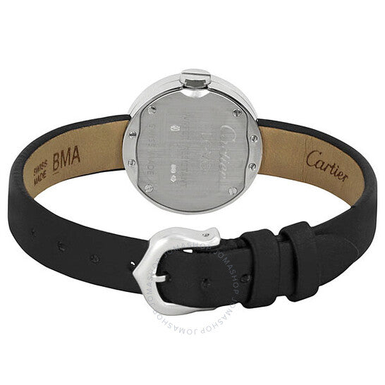 علبة من الذهب الأبيض عيار ١٨ قيراطًا مع سوار أسود من الساتان. إطار ثابت من الفولاذ المقاوم للصدأ مرصع بـ ١٨ ماسة. ميناء أبيض بعقارب فولاذية زرقاء وعلامات ساعات بأرقام رومانية. حركة كوارتز تعمل بالبطارية. زجاج من الياقوت المقاوم للخدش. غطاء خلفي صلب منقوش عليه كلمة "حب". قطر العلبة: ٢٣.٥ مم. سُمكها: ٦ مم. مشبك تانغ. مقاومة للماء حتى عمق ٣٠ مترًا / ١٠٠ قدم. الوظائف: الساعات، الدقائق.