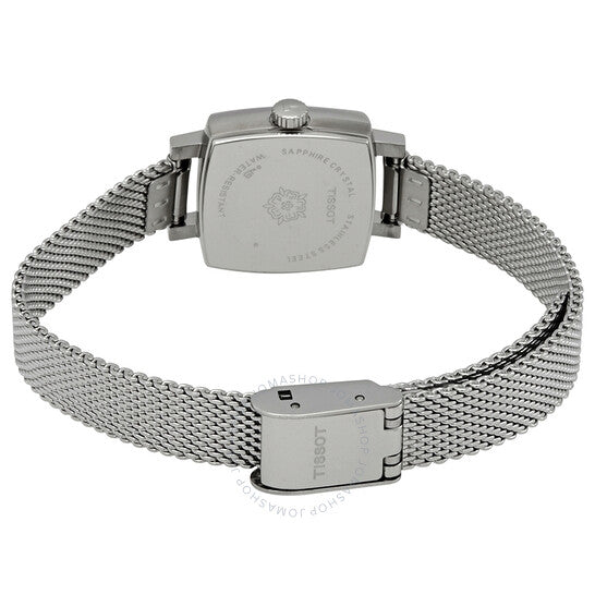 علبة من الفولاذ المقاوم للصدأ مع سوار شبكي من الفولاذ المقاوم للصدأ. إطار ثابت من الفولاذ المقاوم للصدأ. ميناء أزرق بعقارب فضية اللون وعلامات ساعات. نوع الميناء: تناظري. حركة كوارتز عيار ETA 901.001. زجاج من الياقوت المقاوم للخدش. تاج قابل للسحب/الدفع. غطاء خلفي صلب. شكل وسادة. حجم العلبة: 20 مم. سمكها: 7.1 مم. عرض السوار: 9 مم. مشبك مجوهرات. مقاومة للماء حتى عمق 30 مترًا / 100 قدم. الوظائف: الساعات، الدقائق. تصميم كاجوال. علامة الساعة: صناعة سويسرية. ساعة تيسوت نسائية مربعة جميلة، كوارتز، ميناء أزرق، T058.109.11.041.00.