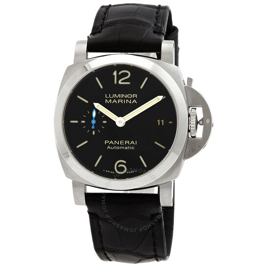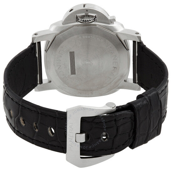 علبة من الفولاذ المقاوم للصدأ فضية اللون مع سوار أسود من جلد التمساح. إطار ثابت من الفولاذ المقاوم للصدأ فضي اللون. ميناء أسود بعقارب فضية اللون وعلامات ساعات. نوع الميناء: تناظري. عقارب وعلامات مضيئة. عرض التاريخ عند موضع الساعة 3. ميناء فرعي واحد يعرض: ثواني صغيرة. حركة بانراي كاليبر P.900 أوتوماتيكية، مستوحاة من بانراي OP XXXIV، تحتوي على 25 جوهرة، تنبض بمعدل 28800 ذبذبة في الساعة، ولديها احتياطي طاقة لمدة 72 ساعة تقريبًا. زجاج ياقوت مقاوم للخدش. غطاء خلفي صلب. شكل العلبة وسادة، حجمها: 40 مم. مقاومة للماء حتى عمق 100 متر / 330 قدمًا. الوظائف: التاريخ، الساعة، الدقائق، الثواني الصغيرة. معلومات إضافية: العلبة الأصلية، دليل الاستخدام (ملحقات كاملة). سلسلة لومينور. طراز ساعة فاخرة. ملصق الساعة: صناعة سويسرية. ساعة بانراي لومينور أوتوماتيكية للرجال بمينا سوداء PAM01372.