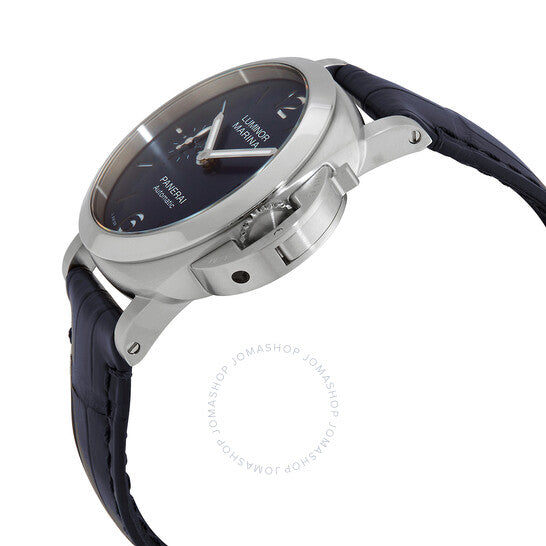 علبة من الفولاذ المقاوم للصدأ مع سوار جلدي أزرق. إطار ثابت من الفولاذ المقاوم للصدأ فضي اللون. ميناء أزرق. نوع الميناء: تناظري. عرض التاريخ عند موضع الساعة 3. ميناء فرعي واحد يعرض: ثواني صغيرة. حركة بانراي كاليبر P.900 أوتوماتيكية، مستوحاة من بانراي OP XXXIV، تحتوي على 25 جوهرة، تنبض بمعدل 28800 ذبذبة في الساعة، ولديها احتياطي طاقة لمدة 72 ساعة تقريبًا. زجاج من الياقوت المقاوم للخدش. تاج لولبي. حجم العلبة: 40 مم. مشبك تانغ. مقاومة للماء حتى عمق 100 متر / 330 قدمًا. الوظائف: التاريخ، الساعة، الدقائق، ثواني صغيرة. معلومات إضافية: العلبة الأصلية، دليل الاستخدام (ملحقات كاملة). سلسلة لومينور. طراز ساعة فاخرة. ملصق الساعة: صناعة سويسرية. ساعة بانراي لومينور أوتوماتيكية للرجال بمينا زرقاء PAM01370.