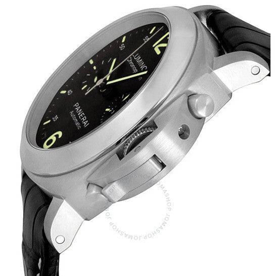 علبة من الفولاذ المقاوم للصدأ فضية اللون، مع سوار جلدي أسود منقوش بنقش جلد التمساح، مع سوار بلون متباين. إطار ثابت من الفولاذ المقاوم للصدأ فضي اللون. ميناء أسود بعقارب مضيئة وعلامات ساعات مضيئة. أرقام عربية تُشير إلى موضعي الساعة 6 و12. علامات دقائق حول الحافة الخارجية. نوع الميناء: تناظري. عقارب وعلامات مضيئة. كرونوغراف - ميناءان فرعيان يعرضان: 60 ثانية و30 دقيقة. حركة بانيراي كاليبر OP XIX أوتوماتيكية، مبنية على ETA 7750، تحتوي على 30 جوهرة، تنبض بمعدل 28800 ذبذبة في الساعة، ولديها احتياطي طاقة لمدة 42 ساعة تقريبًا. كريستال ياقوت مقاوم للخدش ومضاد للانعكاس. تاج محمي من الفولاذ المقاوم للصدأ. غطاء خلفي من كريستال ياقوت شفاف. شكل العلبة: وسادة، حجم العلبة: 40 مم، سمكها: 17 مم. مشبك تانغ. مقاومة للماء حتى عمق 100 متر / 330 قدمًا. الوظائف: كرونوغراف، فلاي باك، ساعات، دقائق، ثوانٍ صغيرة، تاكيمتر. طراز ساعة رياضية. علامة الساعة: صناعة سويسرية. ساعة بانيراي لومينور كرونو للرجال PAM00310.