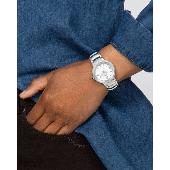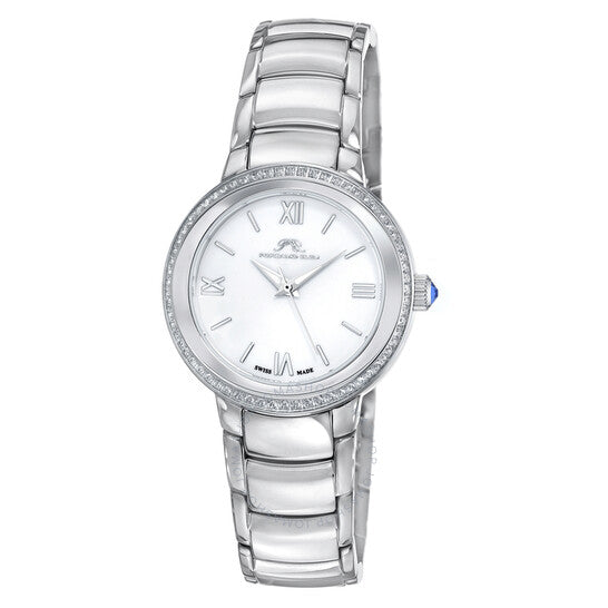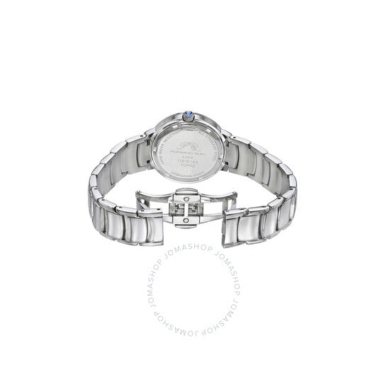 ساعة بورسامو بلو لونا النسائية بإطار من الفولاذ المقاوم للصدأ مرصع بأحجار التوباز الكريمة؛ ميناء مطلي بالمينا؛ هيكل وسوار من الفولاذ المقاوم للصدأ فضي اللون. هيكل ثابت من الفولاذ المقاوم للصدأ فضي اللون. ميناء وردي اللون مع عقارب ومؤشرات ساعات فضية اللون. نوع الميناء: تناظري. حركة كوارتز روندا كاليبر 763. زجاج معدني مقاوم للخدش. غطاء خلفي صلب. هيكل دائري الشكل، مقاسه 34 مم. مشبك قابل للطي مع قفل أمان. مقاومة للماء حتى عمق 50 مترًا / 165 قدمًا. الوظائف: الساعات، الدقائق، الثواني. سلسلة لونا. تصميم ساعة فاخرة. علامة الساعة: سويسرية. ساعة بورسامو بلو لونا النسائية بمينا كوارتز وردي 1181ELUS.