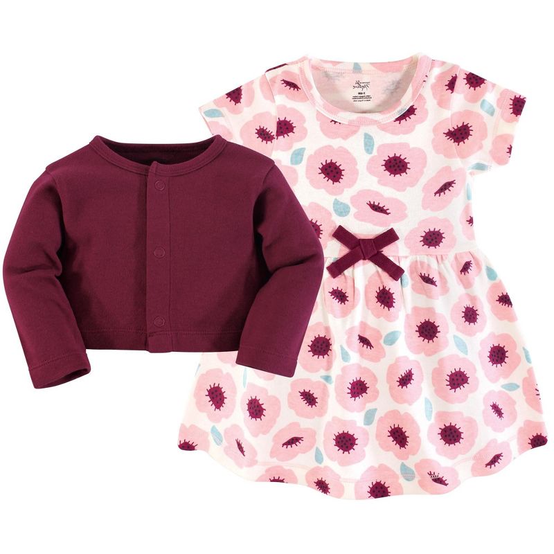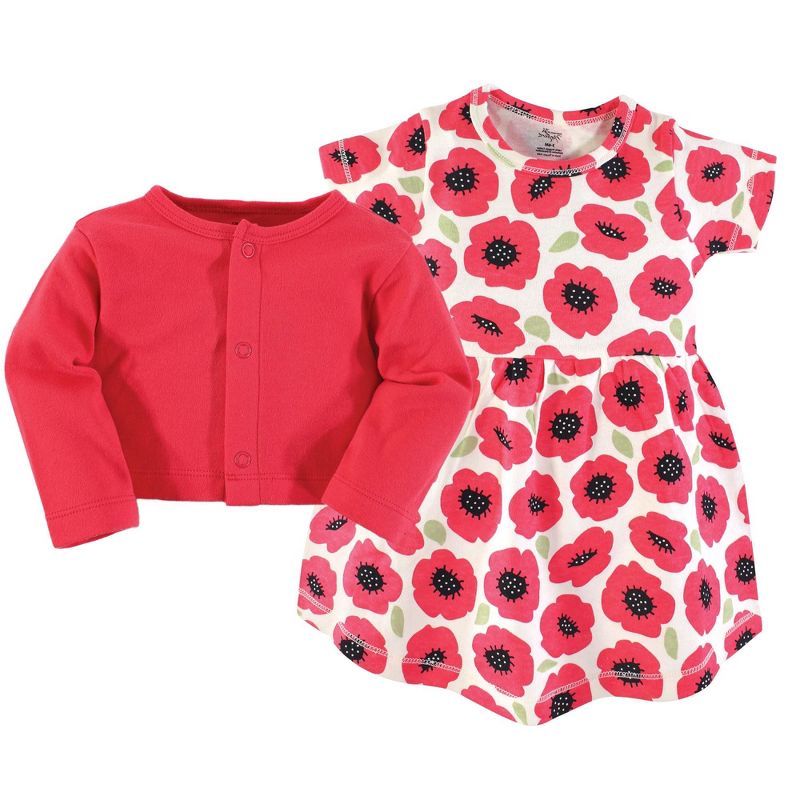 مجموعة مكونة من قطعتين تتضمن فستانًا قطنيًا وكارديجانًا متناسقًا.