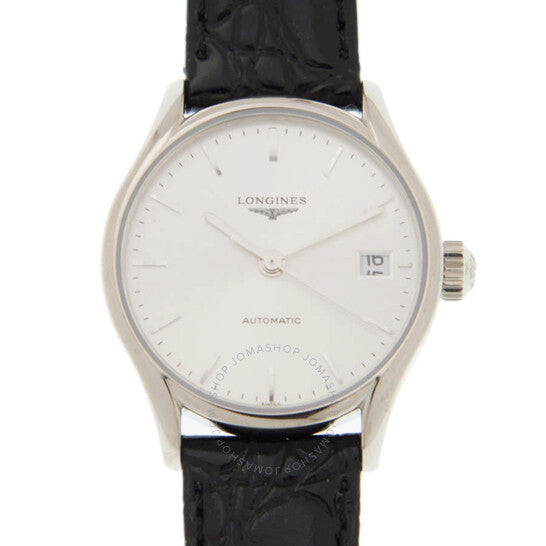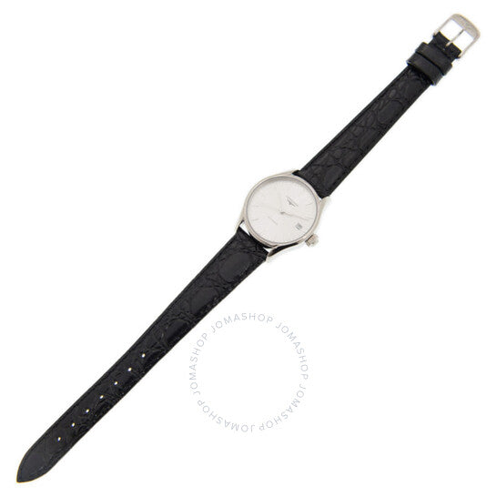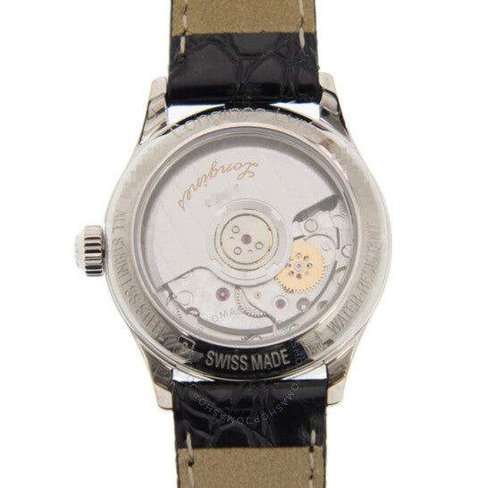 علبة من الفولاذ المقاوم للصدأ فضية اللون مع سوار أسود من جلد التمساح. إطار ثابت من الفولاذ المقاوم للصدأ فضي اللون. ميناء فضي اللون مع عقارب فضية اللون وعلامات ساعات فضية اللون. علامات دقائق حول الحافة الخارجية. نوع الميناء: تناظري. عرض التاريخ عند موضع الساعة 3. حركة لونجين كاليبر L595 أوتوماتيكية، مبنية على ETA 2000/1، تحتوي على 20 جوهرة، تنبض بمعدل 28800 ذبذبة في الساعة، ولديها احتياطي طاقة لمدة 40 ساعة تقريبًا. زجاج ياقوت مقاوم للخدش. غطاء خلفي شفاف. شكل العلبة دائري، مقاسها: 25 مم، سمكها: 8 مم. عرض السوار: 13 مم. مشبك بإبزيم. مقاومة للماء حتى عمق 30 مترًا / 100 قدم. الوظائف: التاريخ، الساعة، الدقيقة، الثانية. معلومات إضافية: العلبة الأصلية، بطاقة ضمان دولية، دليل الاستخدام (ملحقات كاملة). سلسلة Lyre. تصميم ساعة فاخرة. ملصق الساعة: صناعة سويسرية. ساعة لونجين لير أوتوماتيكية بمينا فضي للسيدات L4.360.4.72.2.