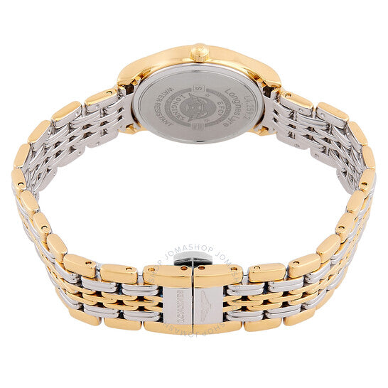 علبة فضية اللون من الفولاذ المقاوم للصدأ مع سوار من الفولاذ المقاوم للصدأ ثنائي اللون (فضي وذهبي أصفر). إطار ثابت من الفولاذ المقاوم للصدأ بلون ذهبي أصفر. ميناء أبيض بعقارب ذهبية صفراء وعلامات ساعات بأرقام رومانية. علامات دقائق حول الحافة الخارجية. نوع الميناء: تناظري. عرض التاريخ عند موضع الساعة 3. حركة كوارتز لونجين كاليبر L152. زجاج ياقوتي مقاوم للخدش. علبة دائرية الشكل، مقاسها 25 مم. مشبك قابل للطي. مقاومة للماء حتى عمق 30 مترًا / 100 قدم. الوظائف: التاريخ، الساعة، الدقيقة، الثانية. معلومات إضافية: العلبة الأصلية، بطاقة ضمان دولية، دليل الاستخدام (ملحقات كاملة). سلسلة ليير. تصميم ساعة فاخرة. ملصق الساعة: صناعة سويسرية. ساعة لونجين ليير كوارتز نسائية بمينا بيضاء، L4.259.2.11.7.