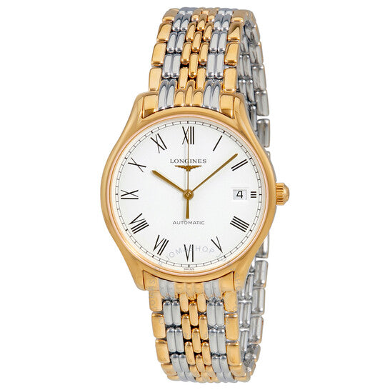 علبة من الفولاذ المقاوم للصدأ مطلية بالذهب ومطلية بتقنية PVD، مع سوار من الفولاذ المقاوم للصدأ بلونين (فضي وذهبي). إطار ثابت مطلي بالذهب ومطلي بتقنية PVD. ميناء أبيض بعقارب ذهبية اللون وعلامات ساعات بأرقام رومانية. علامات دقائق حول الحافة الخارجية. نوع الميناء: تناظري. عرض التاريخ عند موضع الساعة الثالثة. حركة أوتوماتيكية من عيار لونجين L619، مبنية على ETA 2892-A2، تحتوي على 21 جوهرة، تنبض بمعدل 28800 ذبذبة في الساعة، ولديها احتياطي طاقة لمدة 42 ساعة تقريبًا. زجاج من الياقوت المقاوم للخدش. تاج قابل للسحب/الدفع. غطاء خلفي شفاف. شكل دائري. حجم العلبة: 35 مم. سمك العلبة: 7 مم. عرض السوار: 18 مم. مشبك قابل للطي بزر ضغط. مقاومة للماء حتى عمق 30 مترًا / 100 قدم. الوظائف: التاريخ، الساعة، الدقيقة، الثانية. سلسلة Lyre. تصميم ساعة فاخرة. ملصق الساعة: صناعة سويسرية. إصدارات المنتج: L4.860.2.11.7. ساعة لونجين لير النسائية ثنائية اللون، بمينا أبيض، L4.860.2.11.7.