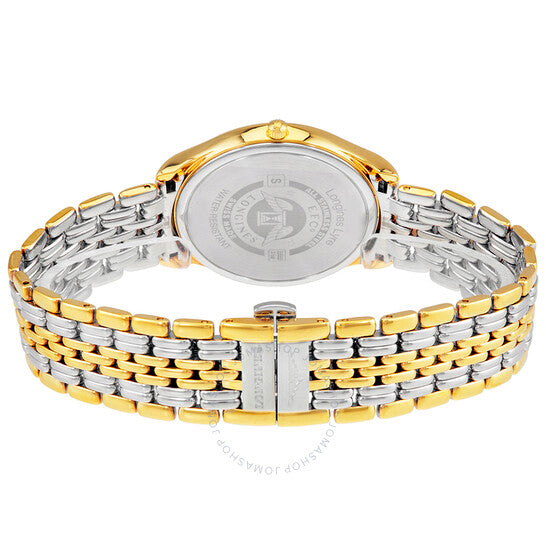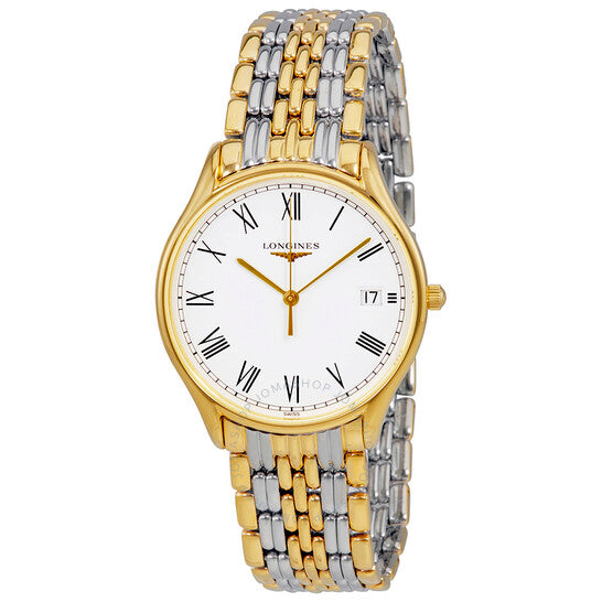 علبة من الفولاذ المقاوم للصدأ مطلية بالذهب الأصفر بتقنية PVD، مع سوار من الفولاذ المقاوم للصدأ ثنائي اللون (فضي وذهبي أصفر بتقنية PVD). إطار ثابت مطلي بالذهب الأصفر بتقنية PVD. ميناء أبيض بعقارب ذهبية صفراء وعلامات ساعات بأرقام رومانية. علامات دقائق حول الحافة الخارجية. نوع الميناء: تناظري. عرض التاريخ عند موضع الساعة 3. حركة كوارتز من عيار لونجين L157. زجاج ياقوتي مقاوم للخدش. غطاء خلفي صلب. شكل دائري. حجم العلبة: 35 مم. سمكها: 8.3 مم. عرض السوار: 18 مم. مشبك قابل للطي بزر ضغط. مقاومة للماء حتى عمق 30 مترًا / 100 قدم. الوظائف: التاريخ، الساعات، الدقائق، الثواني، مؤشر عمر البطارية. سلسلة Lyre. تصميم ساعة فاخرة. علامة الساعة: صناعة سويسرية. إصدارات المنتج: L4 759 2 11 7، L4-759-2-11-7، L4/759/2/11/7، L47592117. ساعة لونجين لير النسائية، بمينا أبيض، ثنائية اللون، L4.759.2.11.7.