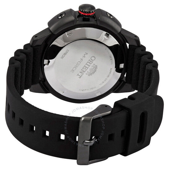 علبة من الفولاذ المقاوم للصدأ مطلية باللون الأسود مع سوار مطاطي أسود. إطار دوار أحادي الاتجاه مطلي باللون الأسود مع حلقة سوداء مرصعة. ميناء أسود بعقارب مضيئة بلون البندقية وعلامات ساعات منقطة. علامات دقائق حول الحافة الخارجية. نوع الميناء: تناظري. عقارب وعلامات مضيئة. عرض التاريخ عند موضع الساعة الثالثة. حركة أوتوماتيكية من عيار أورينت F6727، تحتوي على 22 جوهرة، تنبض بمعدل 21600 ذبذبة في الساعة، ولديها احتياطي طاقة يصل إلى حوالي 40 ساعة. زجاج من الياقوت المقاوم للخدش. تاج لولبي. غطاء خلفي صلب. شكل دائري. حجم العلبة: 45 مم. سمك العلبة: 13.2 مم. عرض السوار: 20 مم. مشبك تانغ. مقاومة للماء حتى عمق 200 متر / 660 قدمًا. الوظائف: التاريخ، الساعة، الدقائق، الثواني. سلسلة M-force. تصميم ساعة كاجوال. ملصق الساعة: Japan Movt. ساعة أورينت إم فورس أوتوماتيكية للرجال بمينا أسود RA-AC0L03B.