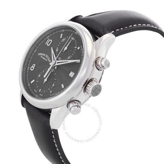 علبة من الفولاذ المقاوم للصدأ فضية اللون مع سوار جلدي أسود. إطار ثابت من الفولاذ المقاوم للصدأ فضي اللون. ميناء أسود بعقارب فضية اللون وعلامات ساعات بأرقام عربية. علامات دقائق حول الحافة الخارجية. نوع الميناء: تناظري. عرض التاريخ عند موضع الساعة 3. كرونوغراف - ميناءان فرعيان يعرضان: 30 دقيقة و12 ساعة. حركة أوتوماتيكية من عيار SW-500. زجاج ياقوتي مقاوم للخدش. غطاء خلفي شفاف. شكل العلبة دائري، مقاسها: 42 مم، سمكها: 13 مم. عرض السوار: 22 مم. مقاومة للماء حتى عمق 100 متر / 330 قدمًا. الوظائف: كرونوغراف، تاريخ، ساعة، دقيقة، ثانية. سلسلة M02-4. طراز الساعة الرياضية. علامة الساعة: صناعة سويسرية. ساعة أرماند نيكوليه M02-4 كرونوغراف أوتوماتيكية للرجال بمينا سوداء، A844AAA-NR-P140NR2.