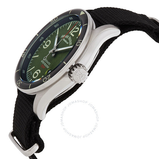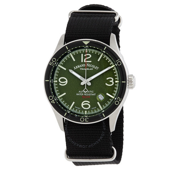 علبة فضية اللون من الفولاذ المقاوم للصدأ مع سوار ناتو أسود. إطار دوار أحادي الاتجاه من الفولاذ المقاوم للصدأ الأسود. ميناء أخضر بعقارب فضية اللون وعلامات ساعات بأرقام عربية. تظهر الأرقام العربية عند الساعة 3 و9 و12. علامات دقائق بأرقام عربية (بفاصل 5 دقائق). علامات دقائق حول الحافة الخارجية. نوع الميناء: تناظري. عرض التاريخ بين الساعة 4 و5. حركة أوتوماتيكية. كريستال ياقوت مقاوم للخدش. تاج قابل للسحب/الدفع. غطاء خلفي شفاف. شكل العلبة دائري، مقاسها 41 مم. مشبك بإبزيم. مقاومة للماء حتى عمق 50 مترًا / 165 قدمًا. الوظائف: التاريخ، الساعة، الدقيقة، الثانية. سلسلة M2H. طراز الساعة الرياضية. علامة الساعة: صناعة سويسرية. ساعة أرماند نيكوليه M2H أوتوماتيكية للرجال بمينا أخضر A740HNA-VR-BN22481AANN.