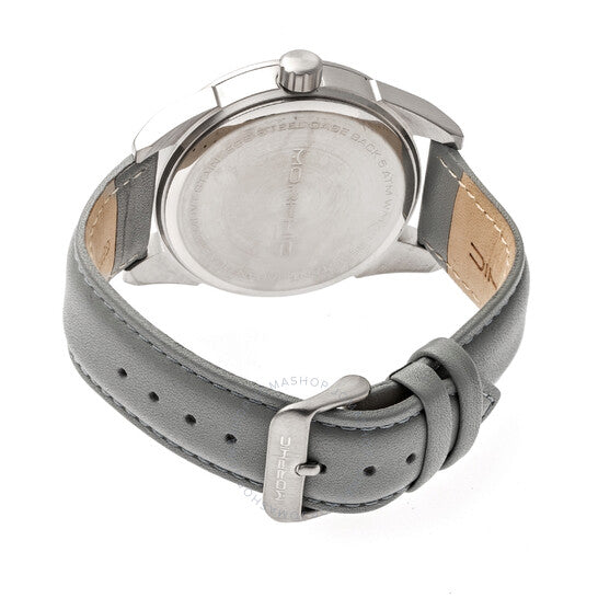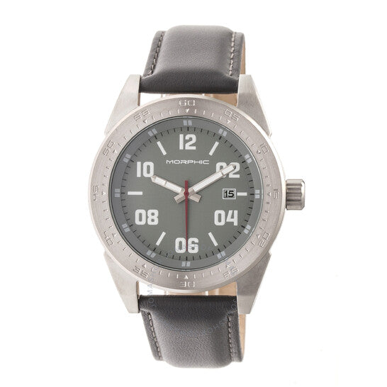 علبة من الفولاذ المقاوم للصدأ فضية اللون مع سوار جلدي رمادي. إطار ثابت من الفولاذ المقاوم للصدأ فضي اللون. ميناء فضي اللون مع عقارب فضية اللون وأرقام عربية وعلامات ساعات. علامات دقائق حول الحافة الخارجية. نوع الميناء: تناظري. عقارب وعلامات مضيئة. عرض التاريخ عند موضع الساعة 3. حركة كوارتز. زجاج معدني مقاوم للخدش. شكل العلبة دائري، مقاسها: 44 مم، سمكها: 11 مم. عرض السوار: 22 مم. مشبك بإبزيم. مقاومة للماء حتى عمق 50 مترًا / 165 قدمًا. الوظائف: التاريخ، الساعة، الدقائق، الثواني. تصميم كاجوال. علامة الساعة: Japan Movt. متغيرات المنتج: MPH6303. ساعة رجالية من سلسلة Morphic M63 بمينا فضي، رقم 6303.
