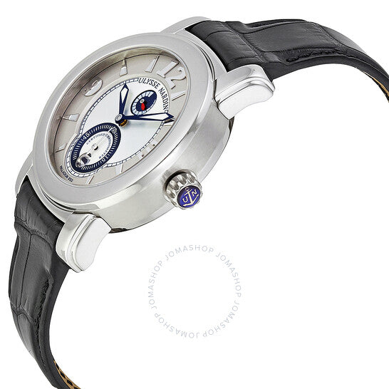 علبة بيضاء من البلاديوم 950 مع سوار جلدي أزرق. إطار ثابت من البلاديوم 950 أبيض. ميناء فضي بعقارب زرقاء مضيئة على شكل سيف وعلامات ساعات. أرقام عربية تُشير إلى الساعات 3 و9 و12. علامات دقائق حول الحافة الخارجية. نوع الميناء: تناظري. عقارب مضيئة. نافذة عرض التاريخ عند الساعة 6. ميناءان فرعيان يعرضان: ثواني صغيرة ومؤشر احتياطي الطاقة. حركة أوتوماتيكية من أوليس ناردين كاليبر UN-27 باحتياطي طاقة لمدة 42 ساعة. زجاج ياقوت مقاوم للخدش. تاج قابل للسحب/الدفع. غطاء خلفي شفاف. هيكل بيضاوي الشكل، أبعاده: 43 مم × 40.5 مم. مشبك قابل للطي. مقاومة للماء حتى عمق 50 مترًا / 165 قدمًا. الوظائف: التاريخ، الساعة، الدقائق، الثواني. سلسلة ماشو بالاديوم. تصميم ساعة فاخرة. علامة الساعة: صناعة سويسرية. ساعة أوليس ناردين ماتشو بالاديوم للرجال بمينا فضي 278-70-609.