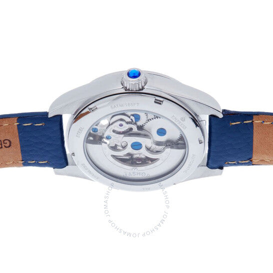 لون السوار: جلد أصلي أزرق؛ عرض السوار: 18 مم بالقرب من العلبة؛ 16 مم بالقرب من المشبك/الإبزيم؛ لون الإطار: فضي؛ العلبة: فضية + على شكل دائرة؛ تشطيب العلبة: مصقول + فولاذ مقاوم للصدأ؛ سمك العلبة: 13 مم؛ عرض العلبة: 37 مم؛ 41 مم مع التاج؛ المشبك/الإبزيم: مشبك حزام؛ الميناء: أبيض + تناظري؛ لون العقارب: فضي؛ الحركة: صينية + أوتوماتيكية؛ المناطق الزمنية: واحدة؛ مقاومة الماء: 5 أجهزة الصراف الآلي.