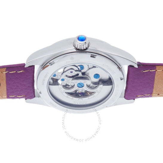 لون السوار: جلد أصلي أرجواني؛ عرض السوار: 18 مم بالقرب من العلبة؛ 16 مم بالقرب من المشبك/الإبزيم؛ لون الإطار: فضي؛ العلبة: فضية + على شكل دائرة؛ تشطيب العلبة: مصقول + فولاذ مقاوم للصدأ؛ سمك العلبة: 13 مم؛ عرض العلبة: 37 مم؛ 41 مم مع التاج؛ المشبك/الإبزيم: مشبك حزام؛ الميناء: أبيض + تناظري؛ لون العقارب: فضي؛ الحركة: صينية + أوتوماتيكية؛ المناطق الزمنية: واحدة؛ مقاومة الماء: 5 أجهزة الصراف الآلي.