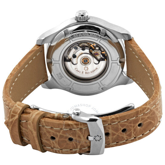 علبة من الفولاذ المقاوم للصدأ مع سوار من جلد التمساح بيج. إطار ثابت من الفولاذ المقاوم للصدأ فضي اللون. ميناء أزرق مع عقارب ومؤشرات ساعات فضية مضيئة. نوع الميناء: تناظري. عقارب ومؤشرات مضيئة. عرض التاريخ عند موضع الساعة 3. حركة أوتوماتيكية كارل إف. بوخرر، عيار CFB 1963، باحتياطي طاقة 38 ساعة. زجاج ياقوت مقاوم للخدش. تاج قابل للسحب/الدفع. غطاء خلفي شفاف. شكل دائري. حجم العلبة: 30 مم. سمكها: 9.54 مم. عرض السوار: 14 مم. مشبك تانغ. مقاومة للماء حتى عمق 30 مترًا / 100 قدم. الوظائف: التاريخ، الساعة، الدقيقة، الثانية. سلسلة مانيرو. تصميم ساعة فاخرة. علامة الساعة: صناعة سويسرية. تنوعات المنتج: 366.571.0. ساعة كارل إف. بوخرر مانيرو أوتوماتيكية نسائية 00.10911.08.53.01.