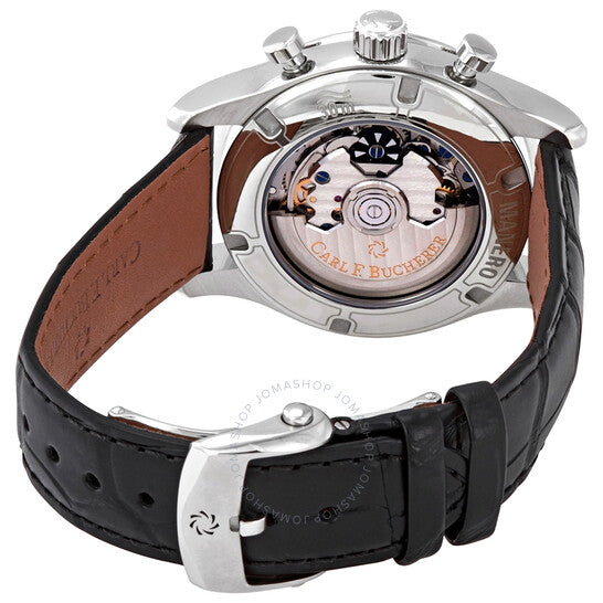 علبة من الفولاذ المقاوم للصدأ مع سوار أسود من جلد التمساح (لويزيانا). إطار ثابت من الفولاذ المقاوم للصدأ. ميناء فضي بعقارب هيكلية فضية اللون وعلامات ساعات مؤشرة. علامات دقائق. علامات تاكيميتر حول الحافة الخارجية. نوع الميناء: تناظري. عرض التاريخ عند موضع الساعة السادسة. كرونوغراف - ميناءان فرعيان يعرضان: ٦٠ ثانية و٣٠ دقيقة. حركة أوتوماتيكية من كارل إف. بوخرر، عيار CFB ١٩٧٠، مع احتياطي طاقة ٤٢ ساعة. زجاج ياقوت مقاوم للخدش. غطاء خلفي شفاف. شكل دائري. حجم العلبة: ٤٣ مم. سمكها: ١٤.٤٥ مم. عرض السوار: ٢٠ مم. مشبك تانغ. مقاومة للماء حتى عمق ٣٠ مترًا / ١٠٠ قدم. الوظائف: كرونوغراف فلاي باك، تاريخ، ساعات، دقائق، ثوانٍ، تاكيميتر. معلومات إضافية: مناسبة للرش، المطر الخفيف؛ غير مناسبة للسباحة أو الغوص. تصميم ساعة فاخرة. علامة الساعة: سويسرية الصنع. ساعة كارل اف بوخرير مانرو كرونوغراف أوتوماتيكية بمينا فضية للرجال 00.10919.08.13.01.