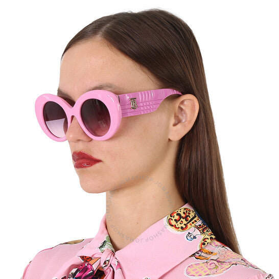 نظارات شمسية من بربري. سلسلة مارغو. رقم السلسلة: BE4370U. رمز اللون: 40295M. الشكل: دائري. عرض العدسة: 49 مم. جسر العدسة: 22 مم. طول الذراع: 140 مم. حماية 100% من الأشعة فوق البنفسجية. غير مستقطبة. مادة الإطار: بلاستيك. لون الإطار: وردي. نوع العدسات: رمادي متدرج وردي. نمط الحافة: حافة كاملة. رمز UPC/EAN: 8056597727983. نظارات شمسية بربري مارغو دائرية نسائية، رمادية متدرجة وردية، BE4370U 40295M، 49.