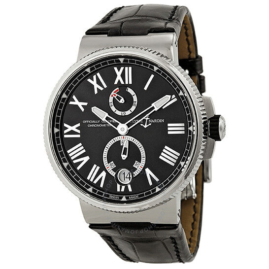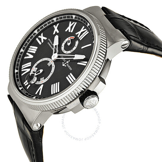 علبة فضية اللون من التيتانيوم والفولاذ المقاوم للصدأ مع سوار أسود من جلد التمساح. إطار ثابت من الفولاذ المقاوم للصدأ بحافة معدنية. ميناء أسود بعقارب هيكلية مضيئة وعلامات ساعات رومانية. علامات دقائق حول الحافة الخارجية. نوع الميناء: تناظري. عقارب وعلامات مضيئة. عرض التاريخ عند موضع الساعة السادسة. ميناءان فرعيان للثواني واحتياطي الطاقة. حركة أوليس ناردين كاليبر UN-118 أوتوماتيكية، مبنية على أوليس ناردين UN-66، تحتوي على 50 جوهرة، تنبض بمعدل 28800 ذبذبة في الساعة، ولديها احتياطي طاقة لمدة 60 ساعة تقريبًا. زجاج ياقوت مقاوم للخدش. تاج مطاطي مثبت ببرغي. ظهر هيكلي. شكل دائري، حجم العلبة: 45 مم، سمك العلبة: 13.85 مم. عرض السوار: 22 مم، طول السوار: 8.5 بوصة. مشبك قابل للطي. مقاومة للماء حتى عمق 200 متر / 660 قدمًا. الوظائف: التاريخ، الساعة، الدقيقة، الثانية، مؤشر احتياطي الطاقة، الكرونومتر. سلسلة كرونومتر مارين. تصميم ساعة فاخر. علامة الساعة: صناعة سويسرية. إصدارات الساعة: 1183 122 42، 1183.122.42، 118312242. ساعة أوليس ناردين كرونومتر مارين أوتوماتيكية للرجال 1183-122-42.