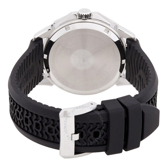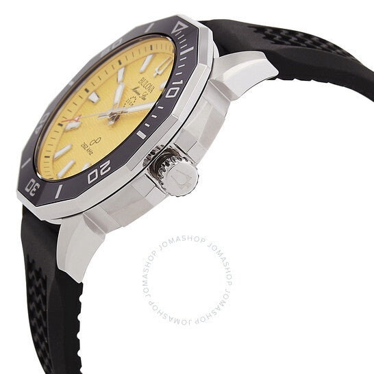 علبة من الفولاذ المقاوم للصدأ فضية اللون مع سوار سيليكون أسود. إطار من الفولاذ المقاوم للصدأ أسود. ميناء أصفر مع عقارب وعلامات ساعات فضية اللون. علامات دقائق حول الحافة الخارجية. نوع الميناء: تناظري. عقارب وعلامات مضيئة. عرض التاريخ عند موضع الساعة 3. حركة كوارتز بولوفا كاليبر NM10. زجاج ياقوت مقاوم للخدش. تاج لولبي. غطاء خلفي صلب. شكل العلبة دائري، مقاسها: 43 مم. عرض السوار: 22 مم. مشبك بإبزيم. مقاومة للماء حتى عمق 200 متر / 660 قدمًا. الوظائف: التاريخ، الساعة، الدقيقة، الثانية. سلسلة مارين ستار. طراز الساعة الرياضية. علامة الساعة: صناعة سويسرية. ساعة بولوفا مارين ستار كوارتز رجالية 96B431.
