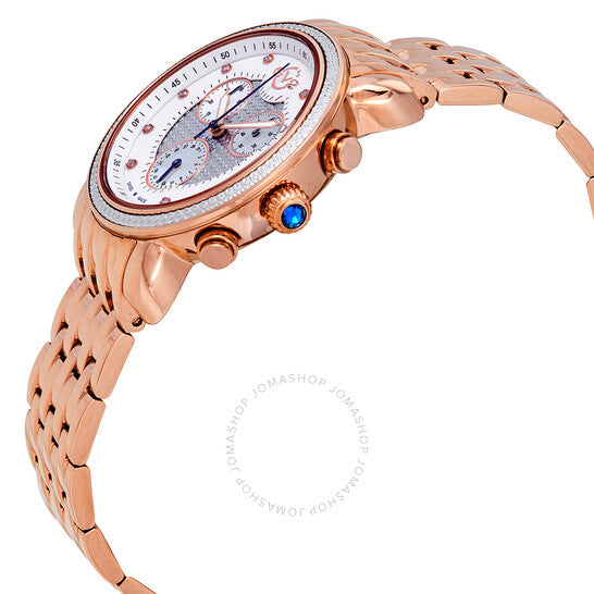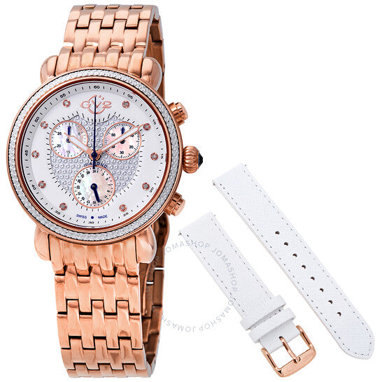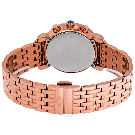 علبة وسوار من الفولاذ المقاوم للصدأ بلون الذهب الوردي. إطار ثابت بلون الذهب الوردي مرصع بكريستالات سواروفسكي. ميناء من عرق اللؤلؤ الأبيض (مرصع بكريستال سواروفسكي) مع عقارب مضيئة بلون الذهب الوردي وعلامات ساعات من الألماس. علامات دقائق حول الحافة الخارجية. نوع الميناء: تناظري. عقارب مضيئة. عرض التاريخ عند موضع الساعة السادسة. كرونوغراف - ثلاثة أقراص فرعية تعرض: 60 ثانية، 30 دقيقة، والتاريخ. حركة كوارتز ISA عيار 8171/202. كريستال ياقوت مقاوم للخدش ومضاد للانعكاس. غطاء خلفي صلب. شكل دائري. حجم العلبة: 37 مم. سمكها: 9 مم. عرض السوار: 18 مم. طول السوار: 7.5 بوصة. مشبك قابل للطي بزر ضغط. مقاومة للماء حتى عمق 30 مترًا / 100 قدم. الوظائف: كرونوغراف، تاريخ، ساعة، دقيقة، ثانية. معلومات إضافية: بشكل عام، تتحمل رذاذ الماء أو الغمر القصير فيه، ولكنها غير مناسبة للسباحة أو الاستحمام. تصميم ساعة رياضية. علامة الساعة: صناعة سويسرية. ساعة GV2 من جيفريل مارسالا كرونوغراف نسائية مرصعة بالألماس والكريستال، رقم 9881.