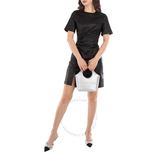 حقيبة بالنسياغا النسائية. رمز المنتج: 747036 2AAKE 8110. الخامة: جلد. اللون: فضي. حقيبة بالنسياغا ماري كيت Xs بمقابض مزدوجة. تتميز هذه الحقيبة الجلدية بشعار العلامة التجارية المنقوش، ومقابض علوية، وجيب رئيسي مفتوح بسحاب. 100% جلد. صنع في إيطاليا.