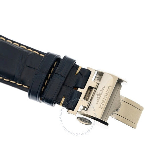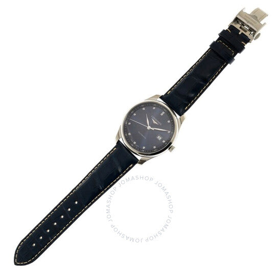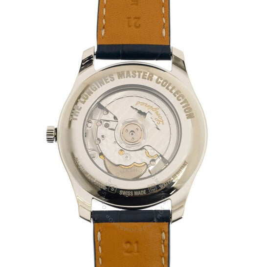 علبة فضية اللون من الفولاذ المقاوم للصدأ مع سوار أزرق من جلد التمساح. إطار ثابت فضي اللون من الفولاذ المقاوم للصدأ. ميناء أزرق بعقارب فضية اللون وعلامات ساعات من الألماس. علامات دقائق حول الحافة الخارجية. نوع الميناء: تناظري. نافذة عرض التاريخ عند موضع الساعة الثالثة. حركة لونجين كاليبر L888 أوتوماتيكية، مبنية على ETA A31.L11، تحتوي على 21 جوهرة، تنبض بمعدل 25200 ذبذبة في الساعة، ولديها احتياطي طاقة يدوم حوالي 64 ساعة. زجاج ياقوت مقاوم للخدش. تاج لولبي. غطاء خلفي شفاف. شكل العلبة دائري، مقاسها 42 مم. مشبك قابل للطي بزر ضغط. مقاومة للماء حتى عمق 30 مترًا / 100 قدم. الوظائف: التاريخ، الساعة، الدقيقة، الثانية. معلومات إضافية: العلبة الأصلية، بطاقة ضمان دولية، دليل الاستخدام (ملحقات كاملة). سلسلة ماستر. طراز ساعة فاخرة. ملصق الساعة: صناعة سويسرية. ساعة لونجين ماستر أوتوماتيكية مرصعة بالألماس بمينا أزرق للرجال L2.893.4.97.0.
