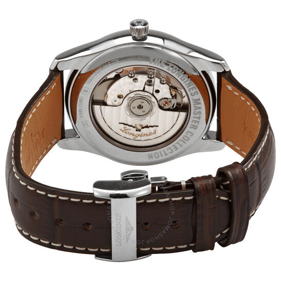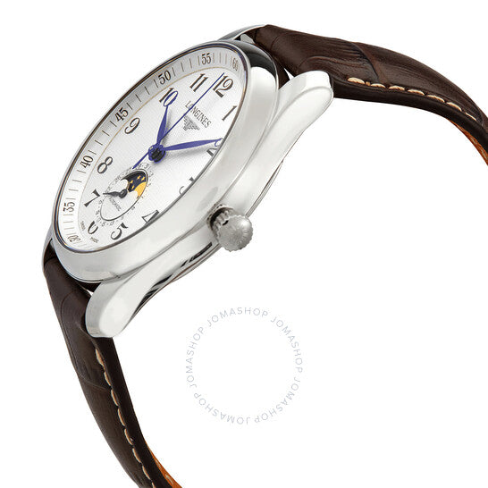 علبة من الفولاذ المقاوم للصدأ مع سوار جلدي بني. إطار ثابت من الفولاذ المقاوم للصدأ. ميناء أبيض بعقارب زرقاء وعلامات ساعات بأرقام عربية. علامات دقائق بأرقام عربية (بفاصل ٥ دقائق). علامات دقائق حول الحافة الخارجية. نوع الميناء: تناظري. عرض التاريخ عند موضع الساعة السادسة. ميناء فرعي للتاريخ/أطوار القمر. حركة أوتوماتيكية باحتياطي طاقة ٧٢ ساعة. زجاج ياقوت مقاوم للخدش. تاج قابل للسحب/الدفع. غطاء خلفي شفاف. شكل دائري. حجم العلبة: ٤٠ مم. سمكها: ١١.١ مم. عرض السوار: ٢٠ مم. مشبك قابل للطي بزر ضغط. مقاومة للماء حتى عمق ٣٠ مترًا / ١٠٠ قدم. الوظائف: التاريخ، الساعة، الدقيقة، الثانية، أطوار القمر. سلسلة ماستر. طراز ساعة رسمية. علامة الساعة: صناعة سويسرية. ساعة لونجين ماستر أوتوماتيك مون فيز للرجال بمينا أبيض، L2.909.4.78.1.
