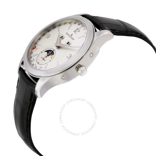 علبة من الفولاذ المقاوم للصدأ فضية اللون مع حزام أسود من جلد التمساح. إطار ثابت من الفولاذ المقاوم للصدأ فضي اللون. ميناء فضي اللون مع عقارب وعلامات ساعات فضية اللون. أرقام عربية تشير إلى مواقع الساعة 3 و9 و12. مقياس التاريخ حول الحافة الخارجية. نوع الميناء: تناظري. عرض يوم الأسبوع والشهر أسفل موضع الساعة 12. موانئ فرعية صغيرة للثواني / أطوار القمر. حركة أوتوماتيكية من طراز Jaeger LeCoultre Calibre JLC 866، تحتوي على 32 جوهرة، مكونة من 305 أجزاء، تنبض بسرعة 28800 ذبذبة في الساعة، ولديها احتياطي طاقة لمدة 43 ساعة تقريبًا. زجاج ياقوت مقاوم للخدش. تاج قابل للسحب/الدفع. غطاء خلفي شفاف. شكل دائري، حجم العلبة: 39 مم، سمك العلبة: 10.6 مم. عرض السوار: 20 مم، طول السوار: 8.5 بوصة. قابلة للطي بمشبك أمان. مقاومة للماء حتى عمق 50 مترًا / 165 قدمًا. الوظائف: تقويم كامل، طور القمر، الشهر، التاريخ، اليوم، الساعة، الدقيقة، الثواني الصغيرة. سلسلة ماستر كاليندر. تصميم ساعة فاخر. علامة الساعة: صناعة سويسرية. إصدارات الساعة: Q1558420، 1558420، 155.84.20، Q155.84.20. ساعة جيجر لوكولتر ماستر كاليندر أوتوماتيكية للرجال Q1558420.