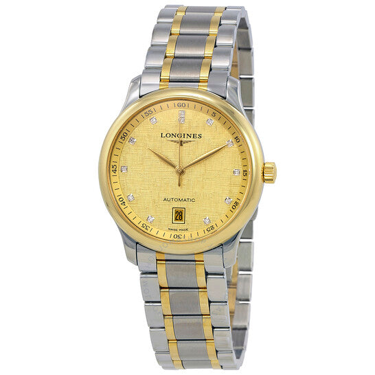 علبة من الفولاذ المقاوم للصدأ بلونين مع سوار من الفولاذ المقاوم للصدأ بلونين. إطار ثابت. ميناء بلون الشمبانيا مع عقارب ذهبية اللون وعلامات ساعات مرصعة بالألماس. نوع الميناء: تناظري. عرض التاريخ عند موضع الساعة السادسة. حركة أوتوماتيكية من لونجين كاليبر L619 مع احتياطي طاقة يدوم حوالي 42 ساعة. زجاج من الياقوت المقاوم للخدش. حجم العلبة: 38.50 مم. شكل العلبة دائري. مقاومة للماء حتى عمق 30 مترًا / 100 قدم. الوظائف: التاريخ، الساعة، الدقائق، الثواني. تصميم ساعة فاخرة. علامة الساعة: صناعة سويسرية. ساعة لونجين ماستر للرجال بمينا شمبانيا مرصعة بالألماس L2.628.5.38.7.