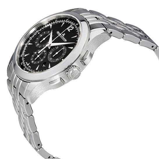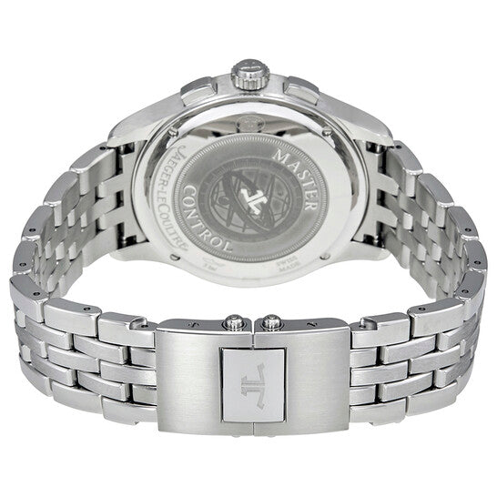 علبة فضية اللون من الفولاذ المقاوم للصدأ مع سوار فضي اللون من الفولاذ المقاوم للصدأ. إطار ثابت فضي اللون من الفولاذ المقاوم للصدأ. ميناء أسود مع عقارب فضية اللون على شكل دوفين وعلامات ساعات. يظهر الرقم العربي عند موضع الساعة ١٢، وعلامات الدقائق، وعلامات مقياس سرعة الدوران حول الحافة الخارجية. نوع الميناء: تناظري. عرض التاريخ بين موضعي الساعة ٤ و٥. كرونوغراف - ثلاثة أقراص فرعية تعرض: ٦٠ ثانية، ٣٠ دقيقة، و١٢ ساعة. حركة أوتوماتيكية من طراز Jaeger LeCoultre Calibre JLC 751A/1، تحتوي على ٤١ جوهرة، تتكون من ٢٧٧ جزءًا، وتنبض بمعدل ٢٨٨٠٠ ذبذبة في الساعة، ولديها احتياطي طاقة لمدة ٦٥ ساعة تقريبًا. زجاج ياقوت مقاوم للخدش. تاج قابل للسحب/الدفع. غطاء خلفي صلب. شكل دائري، حجم العلبة: ٤٠ مم، سمك العلبة: ١٢.٦ مم. مشبك قابل للطي. مقاومة للماء حتى عمق ٥٠ مترًا / ١٦٥ قدمًا. الوظائف: كرونوغراف، مقياس سرعة الدوران، التاريخ، الساعات، الدقائق، الثواني. سلسلة ماستر كرونوغراف. تصميم فاخر. علامة الساعة: صناعة سويسرية. ساعة جيجر لوكولتر ماستر كرونوغراف أوتوماتيكية للرجال Q1538171.