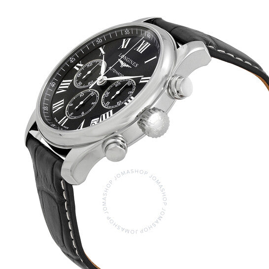 علبة من الفولاذ المقاوم للصدأ مع سوار جلدي أسود. إطار ثابت من الفولاذ المقاوم للصدأ. ميناء أسود بعقارب فضية اللون وعلامات ساعات رومانية. علامات دقائق حول الحافة الخارجية. نافذة لعرض التاريخ بين موضعي الساعة الرابعة والخامسة. كرونوغراف - ثلاثة أقراص فرعية تعرض: 60 ثانية، 30 دقيقة، و12 ساعة. حركة أوتوماتيكية مع احتياطي طاقة لمدة 48 ساعة. زجاج ياقوت مقاوم للخدش. تاج قابل للدفع والسحب. غطاء خلفي شفاف. حجم العلبة: 44 مم. سمكها: 14 مم. شكلها دائري. عرض السوار: 20 مم. مشبك قابل للطي. مقاومة للماء حتى عمق 30 مترًا / 100 قدم. الوظائف: كرونوغراف، تاريخ، ساعة، دقيقة، ثانية، 12 ساعة. تصميم كاجوال. علامة الساعة: صناعة سويسرية. إصدارات المنتج: L2 693 4 51 7، L2-693-4-51-7، L2/693/4/51/7، L26934517. ساعة لونجين ماستر كوليكشن الأوتوماتيكية للرجال L2.693.4.51.7.
