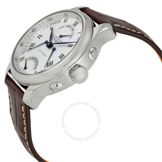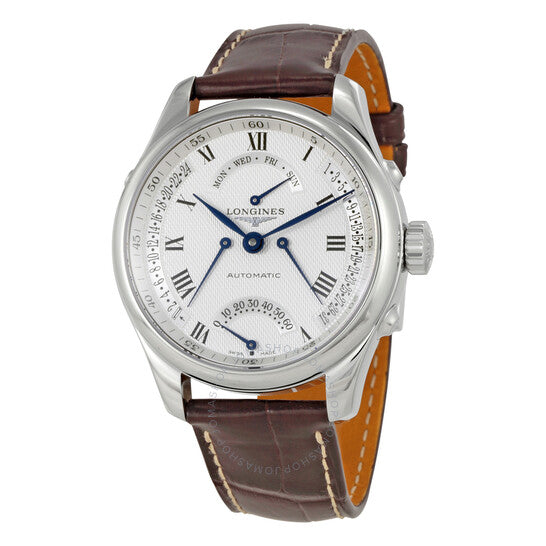 علبة من الفولاذ المقاوم للصدأ مع حزام جلدي بني. إطار ثابت من الفولاذ المقاوم للصدأ. ميناء فضي بعقارب زرقاء وعلامات ساعات رومانية. علامات دقائق حول الحافة الخارجية. نوع الميناء: تناظري. أربعة مؤشرات لعرض: ٢٤ ساعة، يوم الأسبوع، التاريخ، احتياطي الطاقة. حركة أوتوماتيكية من لونجين، عيار L698، باحتياطي طاقة لمدة ٤٦ ساعة. زجاج من الياقوت المقاوم للخدش. تاج قابل للسحب/الدفع. غطاء خلفي شفاف. حجم العلبة: ٤١ مم. سُمكها: ١٦.٢ مم. شكلها دائري. مشبك بزر ضغط قابل للطي. مقاومة للماء حتى عمق ٣٠ مترًا / ١٠٠ قدم. الوظائف: الساعات، الدقائق، الثواني، التقويم، احتياطي الطاقة. طراز ساعة فاخرة. علامة الساعة: صناعة سويسرية. ساعة لونجين ماستر كوليكشن أوتوماتيكية للرجال بمينا فضي، L2.715.4.71.3.