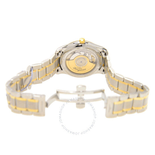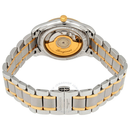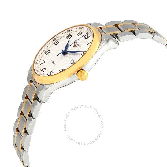 علبة من الفولاذ المقاوم للصدأ مع سوار من الفولاذ المقاوم للصدأ بوصلات من الذهب الأصفر عيار 18 قيراطًا. إطار ثابت من الذهب الأصفر عيار 18 قيراطًا. ميناء فضي بعقارب زرقاء وعلامات ساعات بأرقام عربية. علامات دقائق بأرقام عربية (بفاصل 5 دقائق). علامات دقائق حول الحافة الخارجية. نوع الميناء: تناظري. عرض التاريخ عند موضع الساعة 3. حركة لونجين أوتوماتيكية من عيار L619، مبنية على ETA 2892-A2، تحتوي على 21 جوهرة، تنبض بمعدل 28800 ذبذبة في الساعة، ولديها احتياطي طاقة لمدة 42 ساعة تقريبًا. زجاج من الياقوت المقاوم للخدش. تاج قابل للسحب/الدفع. غطاء خلفي شفاف. شكل دائري. حجم العلبة: 36 مم. عرض السوار: 19 مم. مشبك مخفي قابل للطي. مقاومة للماء حتى عمق 30 مترًا / 100 قدم. الوظائف: التاريخ، الساعة، الدقيقة، الثانية. سلسلة ماستر كوليكشن. تصميم ساعة كاجوال. علامة الساعة: صناعة سويسرية. رقم الصنف: L25185787. ساعة لونجين ماستر كوليكشن أوتوماتيكية للرجال بمينا فضي L2.518.5.78.7.