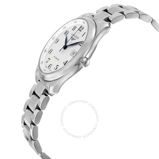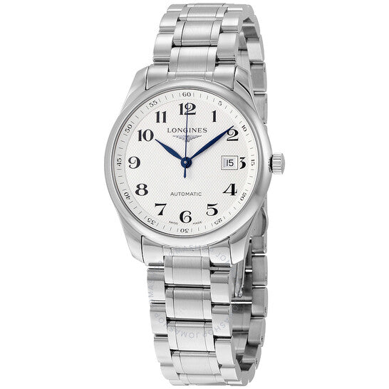 علبة من الفولاذ المقاوم للصدأ مع سوار من الفولاذ المقاوم للصدأ. إطار ثابت من الفولاذ المقاوم للصدأ. ميناء فضي بعقارب زرقاء وعلامات ساعات رقمية عربية. علامات دقائق رقمية عربية (بفاصل 5 دقائق). علامات دقائق حول الحافة الخارجية. نوع الميناء: تناظري. عرض التاريخ عند موضع الساعة 3. حركة لونجين أوتوماتيكية من عيار L619/888، مبنية على ETA 2892، تحتوي على 21 جوهرة، تنبض بمعدل 25200 ذبذبة في الساعة، ولديها احتياطي طاقة لمدة 64 ساعة تقريبًا. زجاج ياقوت مقاوم للخدش. تاج قابل للسحب/الدفع. غطاء خلفي شفاف. شكل دائري. حجم العلبة: 40 مم. سمك العلبة: 9.5 مم. عرض السوار: 21 مم. طول السوار: 8 بوصات. مشبك قابل للطي بزر ضغط للتحرير. مقاومة للماء حتى عمق 30 مترًا / 100 قدم. الوظائف: التاريخ، الساعة، الدقيقة، الثانية. سلسلة ماستر كوليكشن. طراز ساعة رسمية. ملصق الساعة: صناعة سويسرية. اختلافات المنتج: L27934786. ساعة لونجين ماستر كوليكشن أوتوماتيكية للرجال بمينا فضي L2.793.4.78.6.