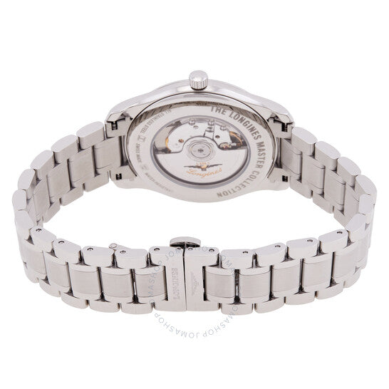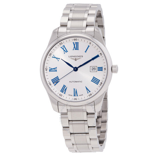 علبة وسوار من الفولاذ المقاوم للصدأ فضي اللون. إطار ثابت من الفولاذ المقاوم للصدأ فضي اللون. ميناء فضي بعقارب زرقاء وعلامات ساعات رومانية. علامات دقائق حول الحافة الخارجية. نوع الميناء: تناظري. عرض التاريخ عند موضع الساعة 3. حركة لونجين كاليبر L888 أوتوماتيكية، مبنية على ETA A31.L11، تحتوي على 21 جوهرة، تنبض بمعدل 25200 ذبذبة في الساعة، ولديها احتياطي طاقة لمدة 64 ساعة تقريبًا. زجاج ياقوت مقاوم للخدش. تاج قابل للسحب/الدفع. غطاء خلفي شفاف. شكل دائري، حجم العلبة: 42 مم، سمك العلبة: 9.64 مم. عرض السوار: 21 مم. مشبك قابل للطي. مقاومة للماء حتى عمق 30 مترًا / 100 قدم. الوظائف: التاريخ، الساعة، الدقيقة، الثانية. سلسلة ماستر كوليكشن. تصميم ساعة كاجوال. علامة الساعة: صناعة سويسرية. ساعة لونجين ماستر كوليكشن أوتوماتيكية للرجال بمينا فضي، L2.893.4.79.6.