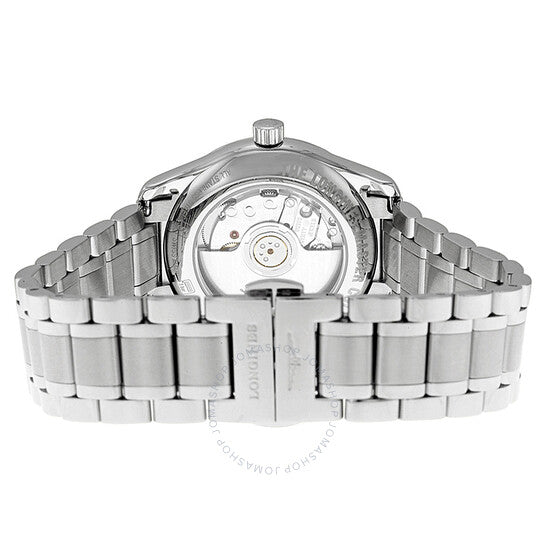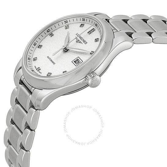 علبة من الفولاذ المقاوم للصدأ مع سوار من الفولاذ المقاوم للصدأ. إطار ثابت من الفولاذ المقاوم للصدأ. ميناء رمادي اللون بعقارب فضية اللون وعلامات ساعات من الألماس. علامات دقائق حول الحافة الخارجية. نوع الميناء: تناظري. عرض التاريخ عند موضع الساعة 3. حركة أوتوماتيكية مع احتياطي طاقة لمدة 40 ساعة. زجاج ياقوت مقاوم للخدش. غطاء خلفي شفاف. قطر العلبة: 29 مم. شكلها دائري. عرض السوار: 15 مم. مشبك قابل للطي. مقاومة للماء حتى عمق 30 مترًا / 100 قدم. الوظائف: التاريخ، الساعة، الدقائق، الثواني. معلومات إضافية: ميناء مرصع بـ 12 ماسة من نوع ويسلتون، بوزن إجمالي 0.034 قيراط. طراز ساعة رسمية. علامة الساعة: صناعة سويسرية. ساعة لونجين ماستر كوليكشن أوتوماتيكية نسائية من الفولاذ المقاوم للصدأ، طراز L22574776.