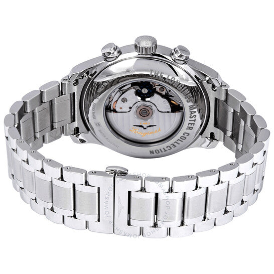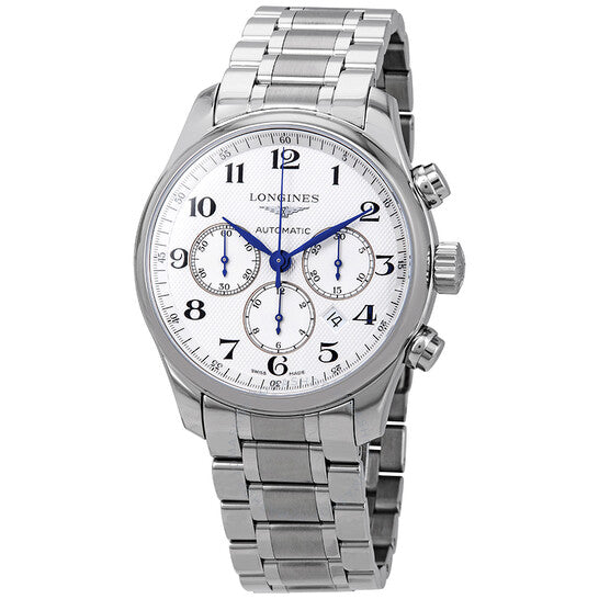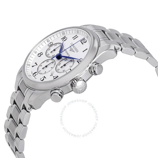 علبة من الفولاذ المقاوم للصدأ مع سوار من الفولاذ المقاوم للصدأ. إطار ثابت من الفولاذ المقاوم للصدأ. ميناء فضي من شعير الشعير مع عقارب زرقاء وعلامات ساعات بأرقام عربية. علامات دقائق حول الحافة الخارجية. نوع الميناء: تناظري. عرض التاريخ بين موضعي الساعة الرابعة والخامسة. كرونوغراف - ثلاثة أقراص فرعية تعرض: ٦٠ ثانية، ٣٠ دقيقة، و١٢ ساعة. حركة أوتوماتيكية من لونجين، عيار L688، مع احتياطي طاقة ٥٤ ساعة. زجاج ياقوت مقاوم للخدش. تاج قابل للسحب/الدفع. غطاء خلفي شفاف. شكل دائري. حجم العلبة: ٤٤ مم. سمكها: ١٤.٥ مم. عرض السوار: ٢٢ مم. مشبك فراشة. مقاومة للماء حتى عمق ٣٠ مترًا / ١٠٠ قدم. الوظائف: كرونوغراف، عجلة عمودية، تاريخ، ساعة، دقيقة، ثانية صغيرة. طراز ساعة رياضية. علامة الساعة: صناعة سويسرية. ساعة لونجين ماستر كوليكشن كرونوغراف أوتوماتيكية للرجال، L2.859.4.78.6