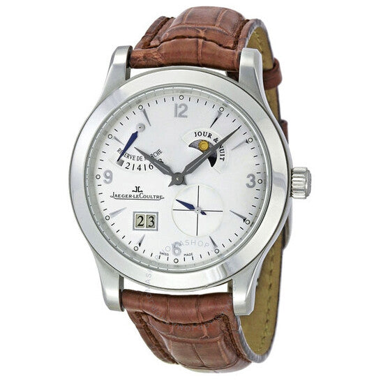 علبة فضية اللون من الفولاذ المقاوم للصدأ مع سوار جلدي بني. إطار ثابت من الفولاذ المقاوم للصدأ فضي اللون. ميناء فضي اللون مع عقارب وعلامات ساعات فضية اللون. أرقام عربية عند الساعة 3، 6، 9، و12. علامات دقائق حول الحافة الخارجية. نوع الميناء: تناظري. عقارب وعلامات مضيئة. عرض التاريخ بين الساعة 7 و8. ثلاثة أقراص فرعية تعرض: 60 ثانية، احتياطي الطاقة، والليل والنهار. حركة جيجر لوكولتر كاليبر JLC 877 يدوية التعبئة، تحتوي على 25 جوهرة، مكونة من 217 جزءًا، تنبض بتردد 28800 ذبذبة في الساعة، ولديها احتياطي طاقة لمدة 192 ساعة تقريبًا. كريستال ياقوت مقاوم للخدش. غطاء خلفي شفاف. شكل دائري، حجم العلبة: 41 مم، سمك العلبة: 10.9 مم. مشبك تانغ. مقاومة للماء حتى عمق 50 مترًا / 165 قدمًا. الوظائف: ثانية، تاريخ، يوم، احتياطي طاقة، ساعة، دقيقة. سلسلة ماستر إيغ. تصميم ساعة فاخر. علامة الساعة: صناعة سويسرية. إصدارات الساعة: Q1608420، 1608420، 160.84.20، Q160.84.20. ساعة جيجر لوكولتر ماستر إيت دايز للرجال من الفولاذ المقاوم للصدأ، 1608420.
