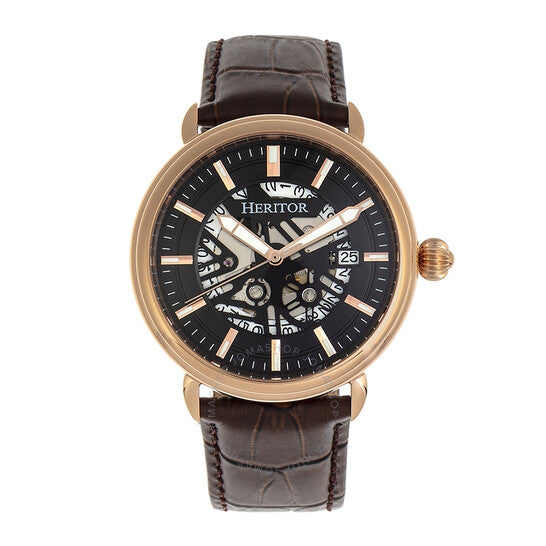علبة من الفولاذ المقاوم للصدأ عيار 316L بلون الذهب الوردي، مع سوار من الجلد الأصلي البني. إطار ثابت من الفولاذ المقاوم للصدأ بلون الذهب الوردي. ميناء أسود بعقارب وعلامات ساعات ذهبية اللون. علامات دقائق حول الحافة الخارجية. نوع الميناء: تناظري. عقارب وعلامات مضيئة. عرض التاريخ عند موضع الساعة 3. حركة أوتوماتيكية من عيار TMI NH35 مع احتياطي طاقة لمدة 41 ساعة. زجاج معدني مقاوم للخدش. تاج قابل للسحب/الدفع. غطاء خلفي شفاف. شكل العلبة دائري، مقاسها: 42 مم، سمكها: 14 مم. عرض السوار: 22 مم. مشبك بإبزيم. مقاومة للماء حتى عمق 50 مترًا / 165 قدمًا. الوظائف: التاريخ، الساعة، الدقيقة، الثانية. تصميم كاجوال. علامة الساعة: Japan Movt. متغيرات المنتج: HRT-HR8406. ساعة هيريتور ماتياس أوتوماتيكية للرجال بمينا أسود HR8406.