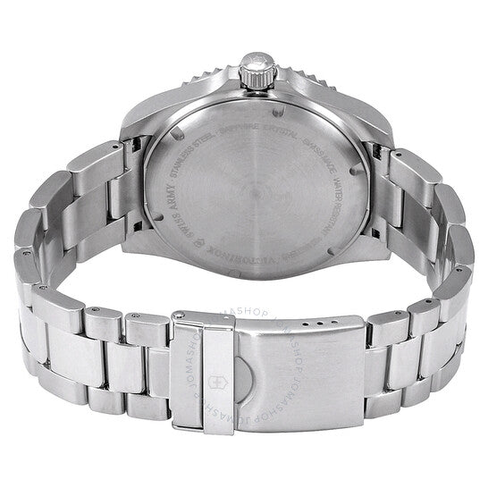 علبة من الفولاذ المقاوم للصدأ مع سوار من الفولاذ المقاوم للصدأ. إطار دوار أحادي الاتجاه من الفولاذ المقاوم للصدأ مع حلقة خضراء مرصعة. ميناء أخضر مع عقارب فضية مضيئة وعلامات ساعات بأرقام عربية. علامات ٢٤ ساعة. علامات دقائق حول الحافة الخارجية. نوع الميناء: تناظري. عقارب وعلامات مضيئة. عرض التاريخ عند موضع الساعة السادسة. حركة كوارتز روندا ٥٠٣٠D. زجاج من الياقوت المقاوم للخدش. غطاء خلفي صلب. شكل دائري. حجم العلبة: ٤٣ مم. سمكها: ١٠ مم. عرض السوار: ٢٠ مم. مشبك قابل للطي. مقاومة للماء حتى عمق ١٠٠ متر / ٣٣٠ قدمًا. الوظائف: التاريخ، الساعة، الدقيقة، الثانية. سلسلة مافريك. تصميم ساعة كاجوال. علامة الساعة: صناعة سويسرية. ساعة فيكتورينوكس مافريك كوارتز رجالية بمينا أخضر ٢٤١٩٣٤.