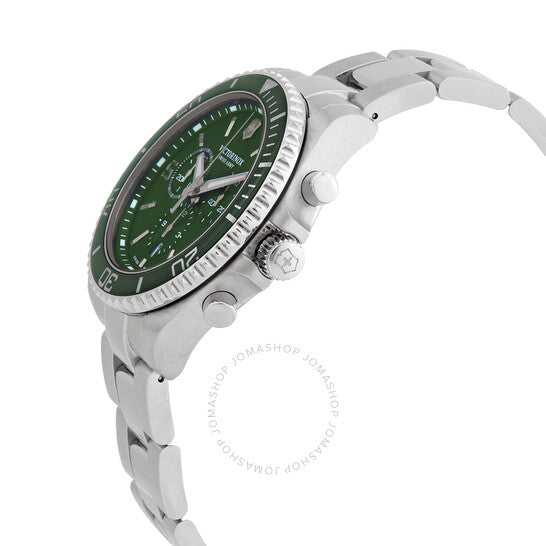 علبة من الفولاذ المقاوم للصدأ مع سوار من الفولاذ المقاوم للصدأ. إطار دوار أحادي الاتجاه من الفولاذ المقاوم للصدأ مع حلقة خضراء مرصعة. ميناء أخضر مع عقارب ومؤشرات ساعات فضية مضيئة. تظهر الأرقام العربية عند موضعي الساعة 3 و9. علامات الدقائق حول الحافة الخارجية. نوع الميناء: تناظري. عقارب ومؤشرات مضيئة. عرض التاريخ فوق موضع الساعة 6. كرونوغراف - ثلاثة موانئ فرعية تعرض: 60 ثانية، 30 دقيقة، و12 ساعة. حركة كوارتز روندا 5030D. كريستال ياقوت مقاوم للخدش. تاج لولبي. غطاء خلفي صلب. شكل دائري. حجم الهيكل: 43.9 مم. سمك الهيكل: 12.7 مم. عرض السوار: 20 مم. مشبك قابل للطي. مقاومة للماء حتى عمق 100 متر / 330 قدمًا. الوظائف: التاريخ، الساعة، الدقائق، الثواني. سلسلة مافريك. تصميم ساعة كاجوال. علامة الساعة: صناعة سويسرية. ساعة فيكتورينوكس مافريك كوارتز بمينا خضراء للرجال 241946.