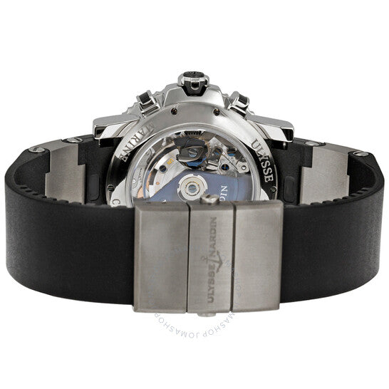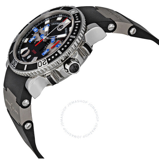 علبة من الفولاذ المقاوم للصدأ مع سوار مطاطي أسود. إطار دوار أحادي الاتجاه من الفولاذ المقاوم للصدأ مطلي بطلاء أيوني أسود. ميناء أسود بعقارب مضيئة وعلامات ساعات لاصقة. علامات دقائق حول الحافة الخارجية. نوع الميناء: تناظري. عقارب وعلامات مضيئة. يظهر عرض التاريخ عند موضع الساعة السادسة. كرونوغراف - ميناءان فرعيان يعرضان: 60 ثانية و30 دقيقة. حركة أوتوماتيكية مع احتياطي طاقة لمدة 42 ساعة. زجاج ياقوت مقاوم للخدش. تاج لولبي. ظهر هيكل عظمي. قطر العلبة: 42.7 مم. سمكها: 15.8 مم. شكلها دائري. عرض السوار: 22 مم. طول السوار: 8.5 بوصة. مشبك قابل للطي. مقاومة للماء حتى عمق 200 متر / 660 قدمًا. الوظائف: كرونوغراف، تاريخ، ساعة، دقيقة، ثانية. تصميم ساعة فاخرة. ملصق الساعة: صناعة سويسرية. ساعة Ulysse Nardin Maxi Marine أوتوماتيكية كرونوغراف للرجال 8003-102-3-92.