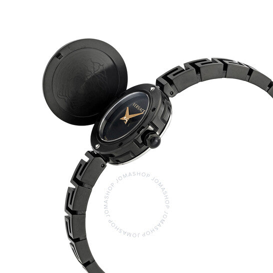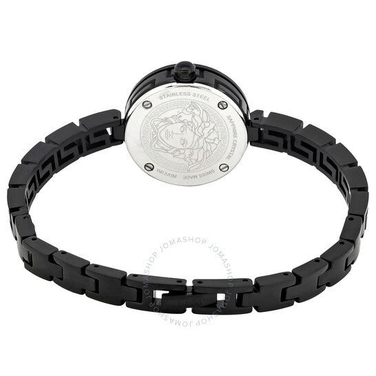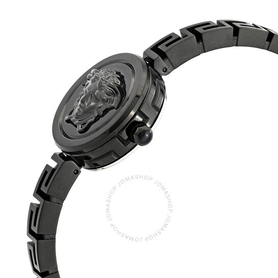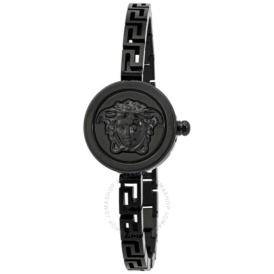 علبة وسوار من الفولاذ المقاوم للصدأ IP أسود. إطار ثابت من الفولاذ المقاوم للصدأ IP أسود. ميناء أسود بعقارب سوداء. بدون مؤشرات. نوع الميناء: تناظري. حركة كوارتز. زجاج ياقوت مقاوم للخدش. تاج قابل للسحب/الدفع. غطاء خلفي صلب. شكل دائري، مقاس العلبة: ٢٥ مم. مشبك مجوهرات. مقاومة للماء حتى عمق ٣٠ مترًا / ١٠٠ قدم. الوظائف: الساعات، الدقائق. سلسلة ميدوسا سيكريت. طراز ساعة رسمية. علامة الساعة: صناعة سويسرية. ساعة فيرساتشي ميدوسا سيكريت كوارتز نسائية بمينا سوداء VEZ500321.