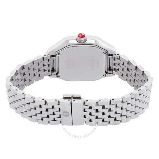 علبة وسوار من الفولاذ المقاوم للصدأ فضي اللون. إطار ثابت من الفولاذ المقاوم للصدأ فضي اللون. ميناء من عرق اللؤلؤ مع عقارب فضية اللون وعلامات ساعات من الألماس. نوع الميناء: تناظري. حركة كوارتز. زجاج ياقوت مقاوم للخدش. شكل العلبة وسادة، مقاسها: ٢٩ مم. مشبك قابل للطي مع قفل أمان. مقاومة للماء حتى عمق ٥٠ مترًا / ١٦٥ قدمًا. الوظائف: الساعات، الدقائق، الثواني. سلسلة ميجي. طراز ساعة رسمية. علامة الساعة: صناعة سويسرية. ساعة ميشيل ميجي كوارتز نسائية مرصعة بالألماس MWW33B000008.