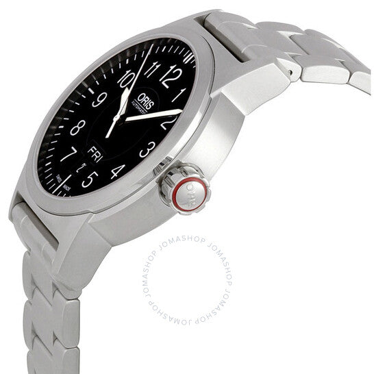 علبة من الفولاذ المقاوم للصدأ مع سوار فولاذي. إطار ثابت من الفولاذ المقاوم للصدأ. ميناء أسود بعقارب مضيئة وأرقام عربية وعلامات ساعات. علامات دقائق على الحافة الخارجية. عرض يوم الأسبوع والتاريخ عند موضع الساعة السادسة. حركة أوتوماتيكية. زجاج ياقوت مقاوم للخدش ومضاد للانعكاس. تاج مثبت ببرغي. غطاء خلفي هيكلي (مفتوح). قطر العلبة: 42 مم. سُمكها: 12 مم. مشبك قابل للطي. مقاومة للماء حتى عمق 100 متر / 330 قدمًا. ساعة أوريس BC3 سبورتسمان للرجال، 735-7640-4164MB.