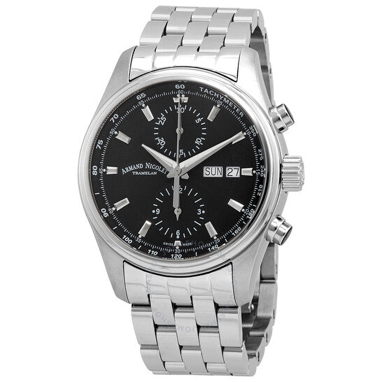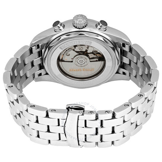 علبة من الفولاذ المقاوم للصدأ مع سوار من الفولاذ المقاوم للصدأ. إطار ثابت من الفولاذ المقاوم للصدأ. ميناء أسود مع عقارب مضيئة فضية اللون وعلامات ساعات. علامات دقائق عربية (بفاصل 5 دقائق). علامات دقائق، وعلامات تاكيميتر حول الحافة الخارجية. نوع الميناء: تناظري. عقارب وعلامات مضيئة. عرض يوم الأسبوع والتاريخ عند موضع الساعة 3. كرونوغراف - ميناءان فرعيان يعرضان: دقيقتان - 30 دقيقة و12 ساعة. حركة أوتوماتيكية من عيار Sellita SW500، تحتوي على 25 جوهرة، تنبض بمعدل 28800 ذبذبة في الساعة، ولديها احتياطي طاقة لمدة 44 ساعة تقريبًا. زجاج ياقوت مقاوم للخدش. غطاء خلفي شفاف. شكل دائري. حجم الهيكل: 42 مم. سمك الهيكل: 15 مم. مشبك قابل للطي بزر ضغط. مقاومة للماء حتى عمق 100 متر / 330 قدمًا. الوظائف: كرونوغراف، تاريخ، يوم، ساعة، دقيقة، ثواني صغيرة. سلسلة MH2. ساعة رسمية. علامة الساعة: صناعة سويسرية. ساعة أرماند نيكوليه MH2 كرونوغراف أوتوماتيكية للرجال بمينا أسود، A647A-NR-MA2640A.