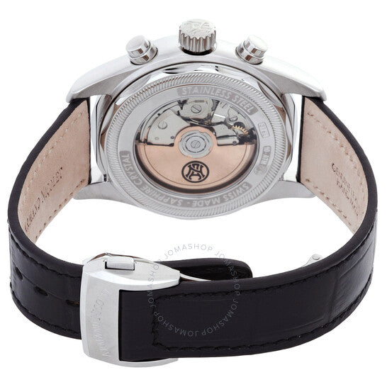 علبة فضية اللون من الفولاذ المقاوم للصدأ مع سوار أسود من جلد التمساح. إطار ثابت فضي اللون من الفولاذ المقاوم للصدأ. ميناء أزرق مائي مع عقارب فضية اللون وعلامات ساعات. علامات دقائق عربية (بفاصل 5 دقائق). علامات دقائق وعلامات تاكيميتر حول الحافة الخارجية. نوع الميناء: تناظري. عقارب وعلامات مضيئة. عرض يوم الأسبوع والتاريخ عند موضع الساعة 3. كرونوغراف - يعرض الميناءان الفرعيان: دقيقتان و30 دقيقة و12 ساعة. حركة أوتوماتيكية من سيليتا كاليبر SW500، تحتوي على 25 جوهرة، تنبض بمعدل 28800 ذبذبة في الساعة، ولديها احتياطي طاقة لمدة 44 ساعة تقريبًا. زجاج ياقوت مقاوم للخدش. غطاء خلفي شفاف. شكل دائري، حجم العلبة: 43 مم. مشبك قابل للطي. مقاومة للماء حتى عمق 100 متر / 330 قدمًا. الوظائف: كرونوغراف، تاريخ، يوم، ساعة، دقيقة، ثانية صغيرة. سلسلة Mh2. طراز ساعة رسمية. علامة الساعة: صناعة سويسرية. ساعة أرماند نيكوليه MH2 كرونوغراف أوتوماتيكية للرجال A647A-TF-P840NR2.
