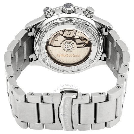علبة من الفولاذ المقاوم للصدأ مع سوار من الفولاذ المقاوم للصدأ. إطار ثابت من الفولاذ المقاوم للصدأ. ميناء أسود بعقارب فضية اللون وعلامات ساعات. أرقام عربية عند موضعي الساعة 3 و9. علامات دقائق حول الحافة الخارجية. نوع الميناء: تناظري. عرض التاريخ عند موضع الساعة 4. كرونوغراف - ميناءان فرعيان فضيان يعرضان: 30 دقيقة و12 ساعة. عيار أرماند نيكوليه SW-500. حركة أوتوماتيكية. كريستال ياقوت مقاوم للخدش. تاج قابل للسحب/الدفع. غطاء خلفي شفاف. شكل دائري. حجم الهيكل: 42 مم. سمك الهيكل: 15 مم. عرض السوار: 22 مم. مشبك قابل للطي. مقاومة للماء حتى عمق 100 متر / 330 قدمًا. الوظائف: كرونوغراف، تاريخ، ساعة، دقيقة، ثانية. سلسلة MHA. طراز ساعة رسمية. ملصق الساعة: صناعة سويسرية. ساعة أرماند نيكوليت MHA كرونوغراف أوتوماتيكية بمينا أسود للرجال A844HAA-NR-M2850A.