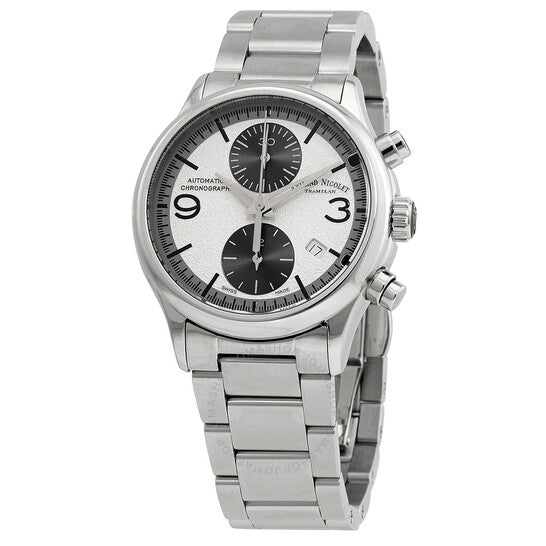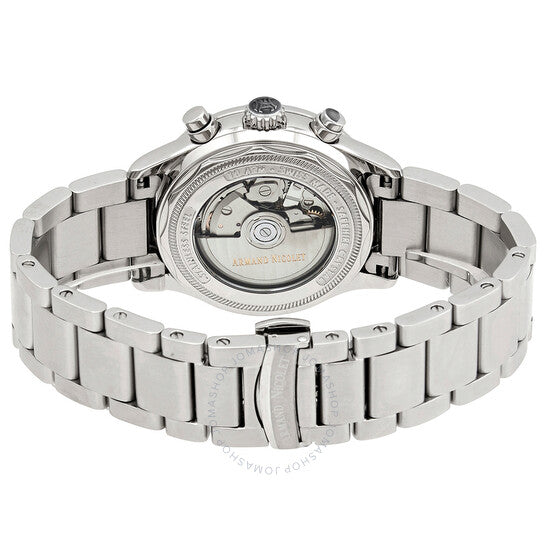 علبة من الفولاذ المقاوم للصدأ مع سوار من الفولاذ المقاوم للصدأ. إطار ثابت من الفولاذ المقاوم للصدأ. ميناء فضي اللون بعقارب فضية اللون وعلامات ساعات. أرقام عربية عند موضعي 3 و9. علامات دقائق حول الحافة الخارجية. نوع الميناء: تناظري. عرض التاريخ عند موضع الساعة 4. كرونوغراف - ميناءان فرعيان أسودان يعرضان: 30 دقيقة و12 ساعة. حركة أوتوماتيكية من عيار Armand Nicolet SW-500. كريستال ياقوت مقاوم للخدش. تاج دفع/سحب. غطاء خلفي شفاف. شكل دائري. حجم الهيكل: 42 مم. سمك الهيكل: 15 مم. عرض السوار: 22 مم. مشبك قابل للطي. مقاومة للماء حتى عمق 100 متر / 330 قدمًا. الوظائف: كرونوغراف، تاريخ، ساعة، دقيقة، ثانية. سلسلة MHA. طراز ساعة رسمية. ملصق الساعة: صناعة سويسرية. ساعة Armand Nicolet MHA كرونوغراف أوتوماتيكية بمينا فضي للرجال A844HAA-AG-M2850A.